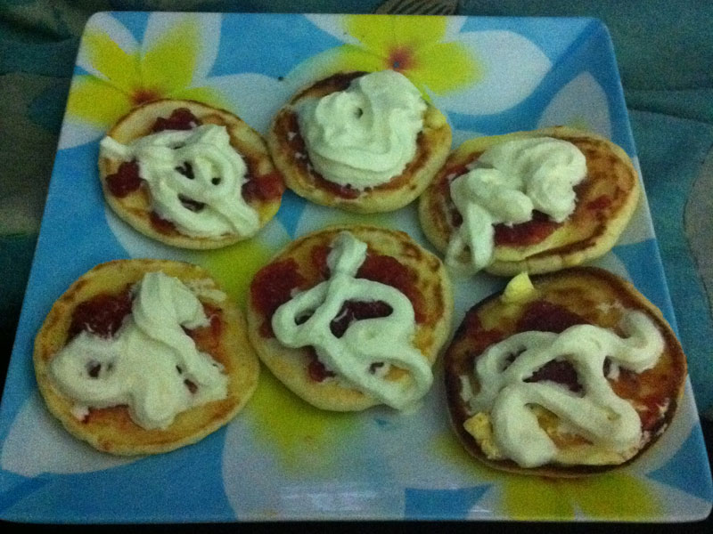 Oh here's a pic of our delightful pikelets I made for us last night to have as supper.